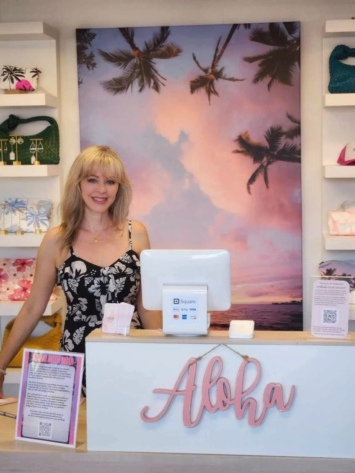 While walking through a pop-up street market on Ali’I Drive, an idea was born, to give back to her beloved Kona, support Hawaiian culture and artists across the islands, and bring the rainbow hues and natural inspiration of Hawaii-sourced fashion, art, home décor, and jewelry back home to where she lives in the Pacific Northwest.